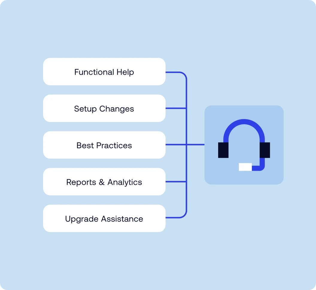 Are you looking for NetSuite experts to help with ongoing administrative needs? Our NetSuite managed services and support team can help with functional questions, best practices, reports, and more.