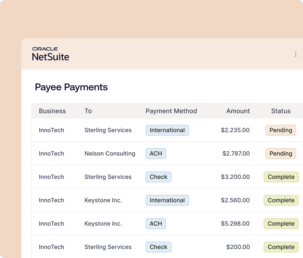 Complete audit trails are automatically maintained within NetSuite for every payment, approval, and status change. Audit-ready documentation, without the anxiety of scattered records across multiple systems.