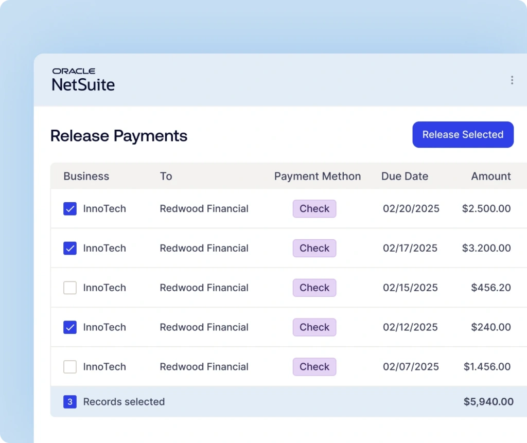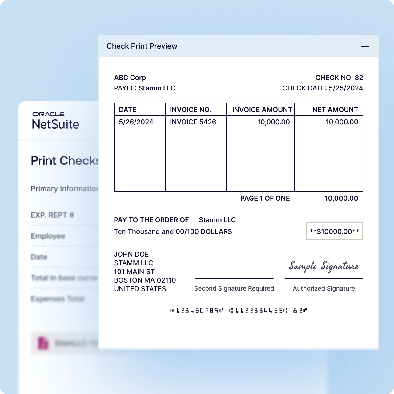 Check numbers are automatically tracked within NetSuite’s native framework with additional controls to ensure integrity. Our solution maintains complete audit trails and prevents duplicates while integrating with your existing NetSuite numbering sequences and approval workflows.
