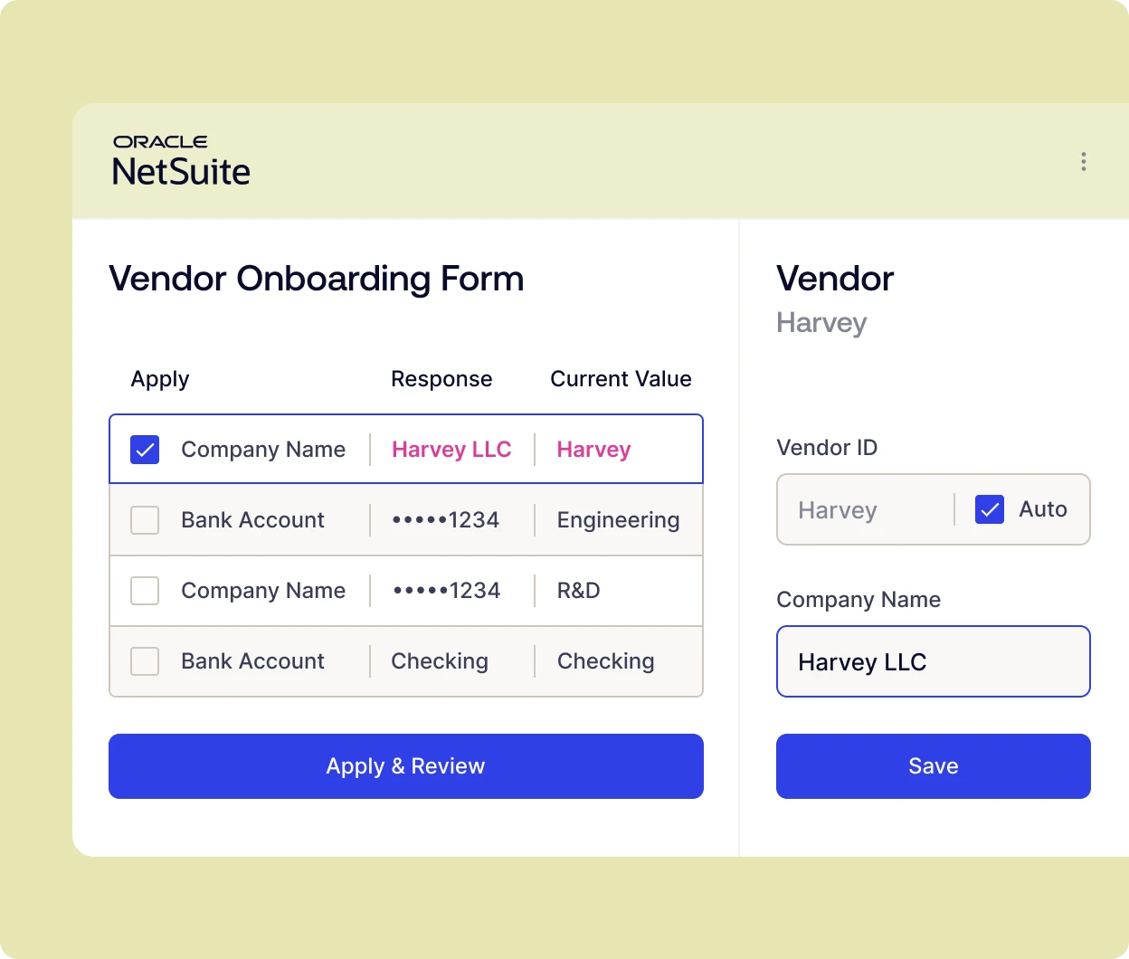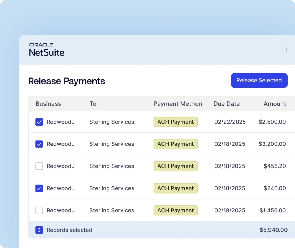 Vendor responses populate NetSuite records instantly. Route through configurable approval workflows where approvers don’t need NetSuite access. Once approved, vendors are payment-ready across all methods.