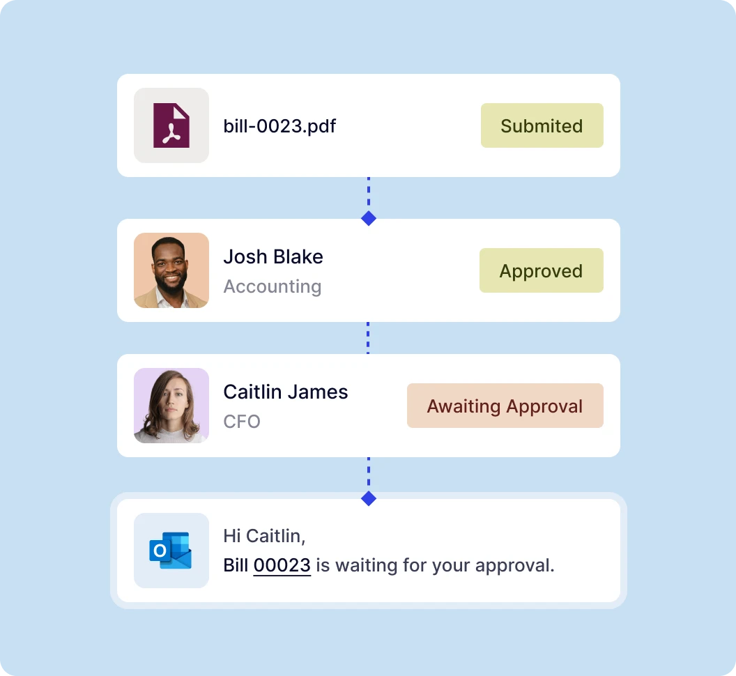 Route invoices to any stakeholder with configurable approval rules, enable approvals directly from email without NetSuite licenses, and maintain complete audit trails automatically.