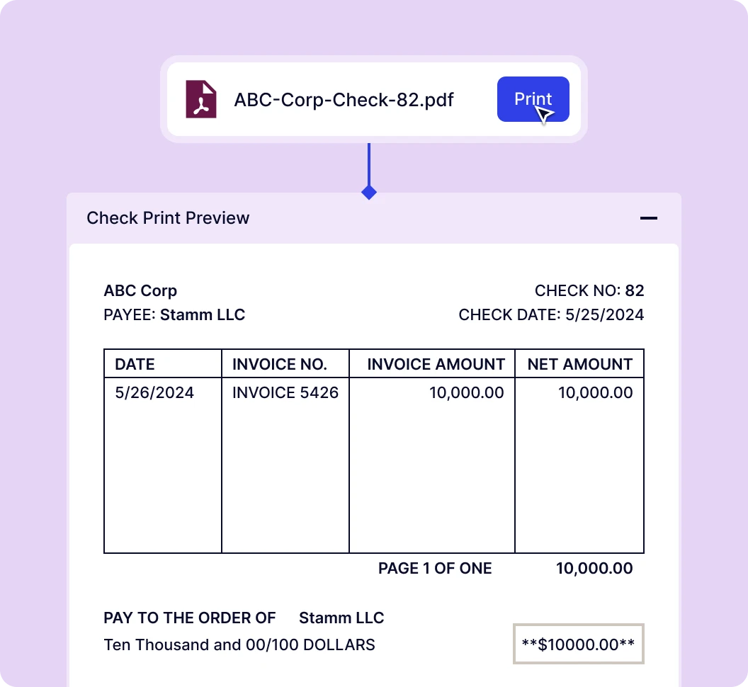 We support ACH payments through any US bank, on-premise check printing with digital signatures, outsourced check processing, and international payments via IACH and wire transfers to 200+ countries—all from one unified platform.