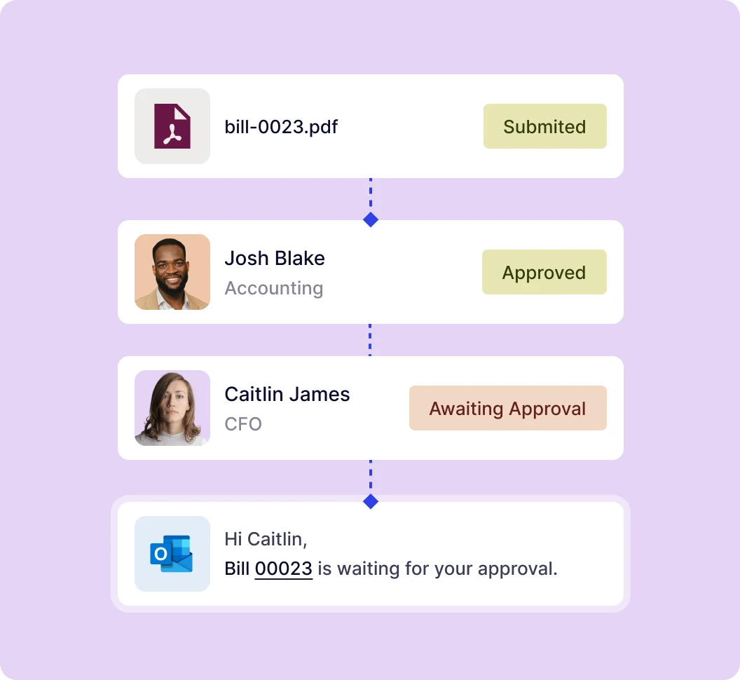 Route payments to any stakeholder with configurable approval rules, enable approvals directly from email without NetSuite licenses, and maintain complete audit trails automatically.