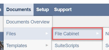 When you purchase NetSuite, it comes with a file system called the “File Cabinet”. When logging in as Administrator, you can access your File Cabinet by navigating to Documents > Files > File Cabinet.