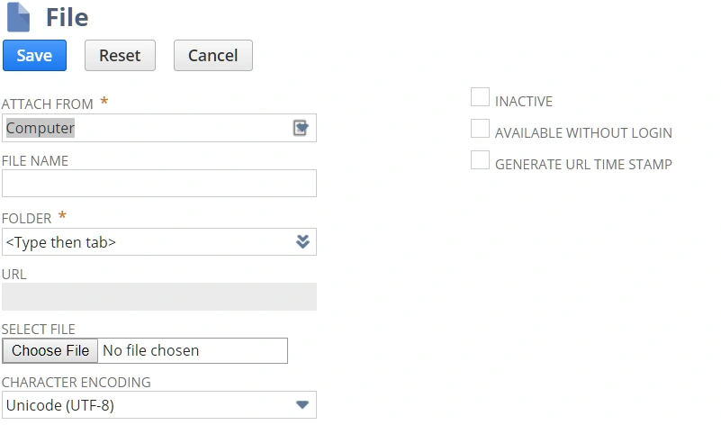 The next screenshot shows the screen that NetSuite provides to upload a file into the File Cabinet.