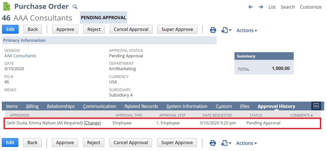 Step 4: You’re done. Purchase Orders can now be submitted for approval and the specified employees will be required to approve the transaction.