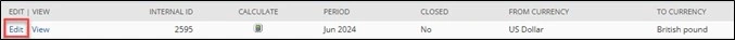 The Consolidated Exchange Rates for the following can be manually edited: