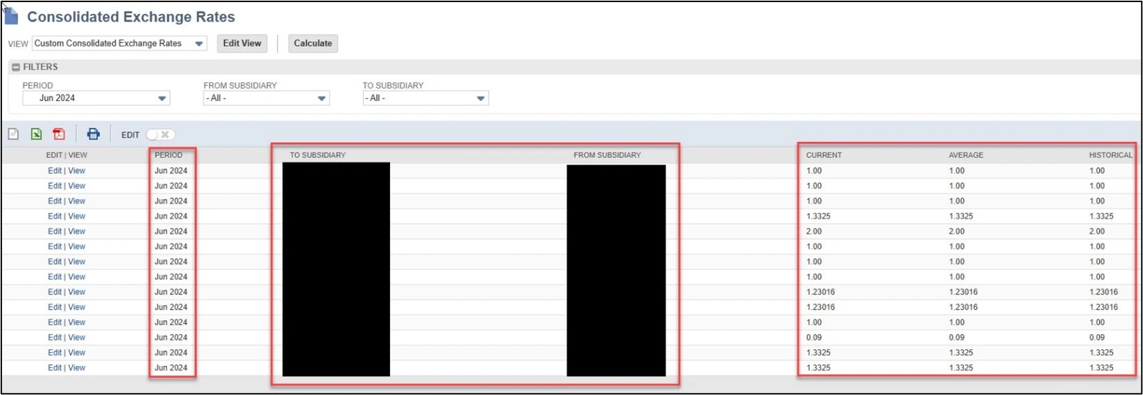 Consolidated Exchange Rates will be automatically calculated by NetSuite as part of the Period Close Checklist, which is the recommended approach. However, you do have the option of manually setting Consolidated Exchange Rates. This is typically used to ensure that the rates used for historical financial reporting match those that were used in a prior system.