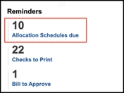 Your Reminders portlet will show you how many allocation schedules are due to be run.