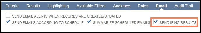 Finally, if the “Send If No Results” box is checked, NetSuite will send emails to the specified recipients even if there are no results to display: